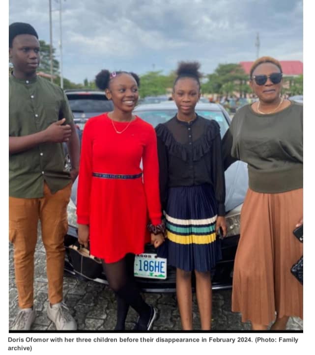 2024. Mrs. Doris left the house sometime that morning while he was at work. When he returned later in the day, the home was empty. At first, he thought they had gone to visit her sister or to the market. But hours turned into days, phone calls went unanswered. No one had seen or heard from them and have not been seen or heard from since. Mr. Ofomor said that there was no prior indication of conflict or distress within the family that could have led to their sudden disappearance.